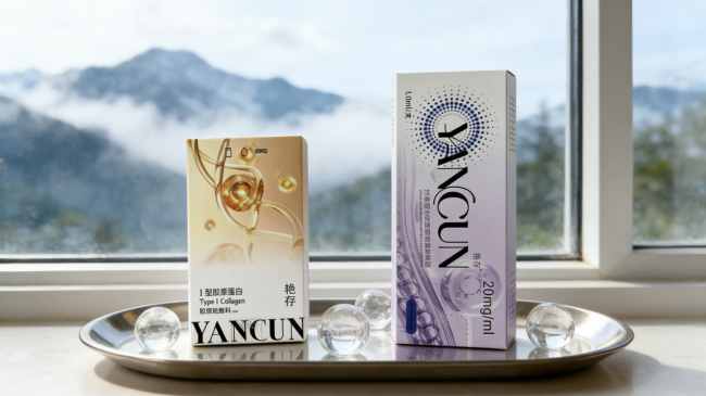 艳存晓年轻胶原水光套组,精准直击干皮根源,将晓年轻Ⅰ型胶原蛋白与晓轻颜微交联玻尿酸复配,实现玻胶双补1+1>2的功效,从根源解决干皮问题。晓年轻Ⅰ型胶原蛋白来源于牛跟腱提取,保留完整的三维立体结构,能快速填补真皮层胶原缺失,在真皮层构建大量微支撑结构,不仅能改善皮肤弹性,让皮肤变得紧实柔软,还能强化皮肤基底膜带,修复受损的皮肤屏障,增强皮肤的锁水能力,从根源减少水分流失。