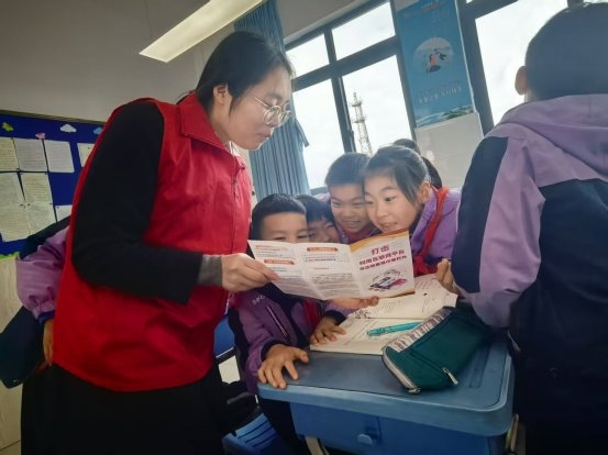 在互动环节中,孩子们踊跃举手提问,积极参与金融知识抢答,工作人员耐心解答孩子们提出的各类问题,现场氛围十分热烈。同时,银行工作人员还向师生们发放了图文并茂的金融知识宣传手册、相关折页,方便孩子们课后学习、回家与家长共同分享,实现 “教育一个学生、带动一个家庭、影响整个社会” 的宣传效果。